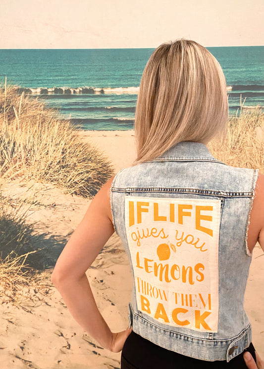 If Life Gives You Lemons, Throw Them Back - Distressed Light-Wash Denim Vest