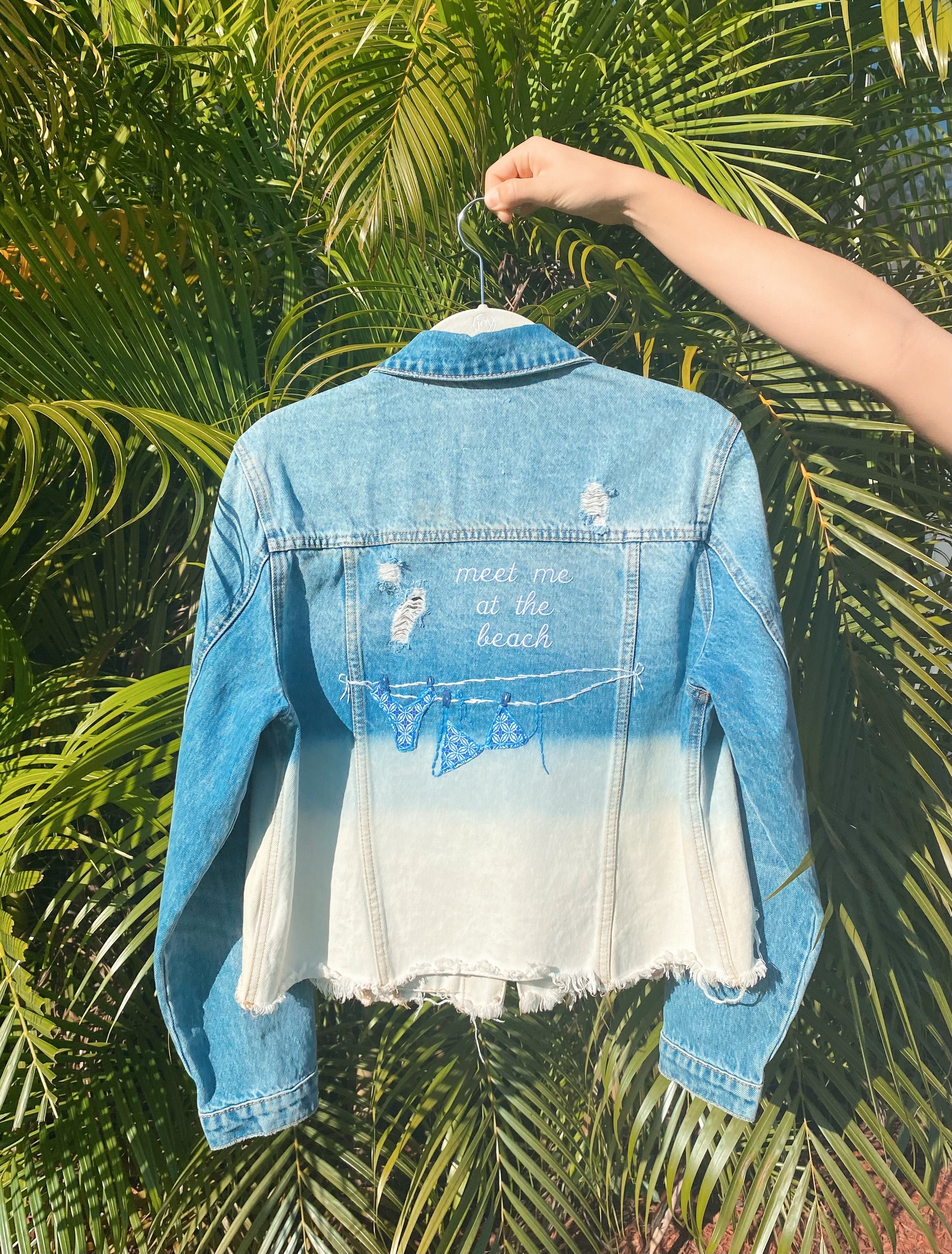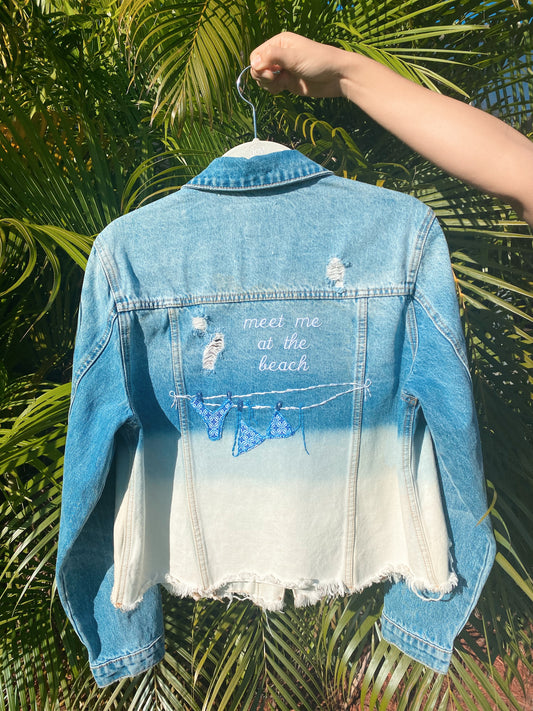 Hand Embroidered Meet Me At The Beach Denim Jacket