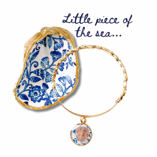 Beach Inspired Gift Set – Oyster Ring Dish & Seashell Charm Bangle Bracelet | Coastal Jewelry Gift for Ocean Lovers