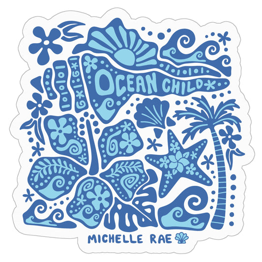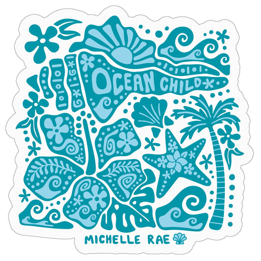 Ocean Child Sticker – 3" x 3" vinyl coastal decal. Waterproof, durable, and perfect for laptops, water bottles, and ocean-inspired gifts.
