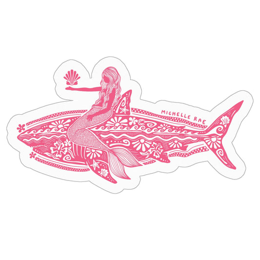 Mermaid Shark Sticker – 3" x 3" vinyl coastal decal. Waterproof, durable, and perfect for laptops, water bottles, and ocean-inspired gifts.
