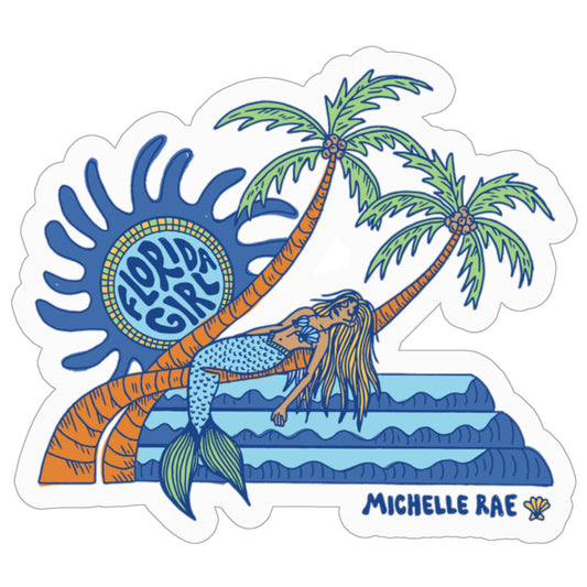 Florida Girl Sticker – 3" x 3" vinyl coastal decal. Waterproof, durable, and perfect for laptops, water bottles, and ocean-inspired gifts.
