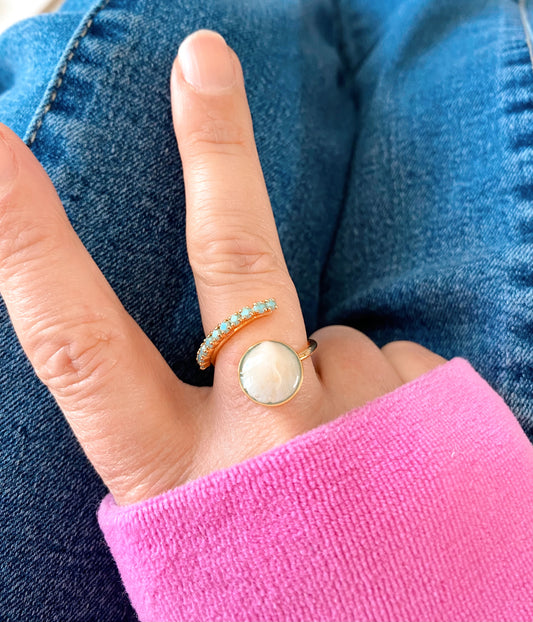 Seafoam Wrap Seashell Ring with Aqua Stone Band – Turquoise