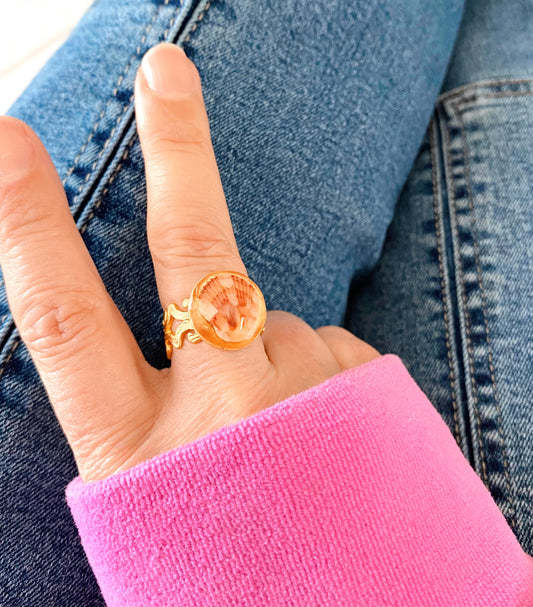 Flutter Seashell Spiral Ring with Butterfly Detail – Fuscia