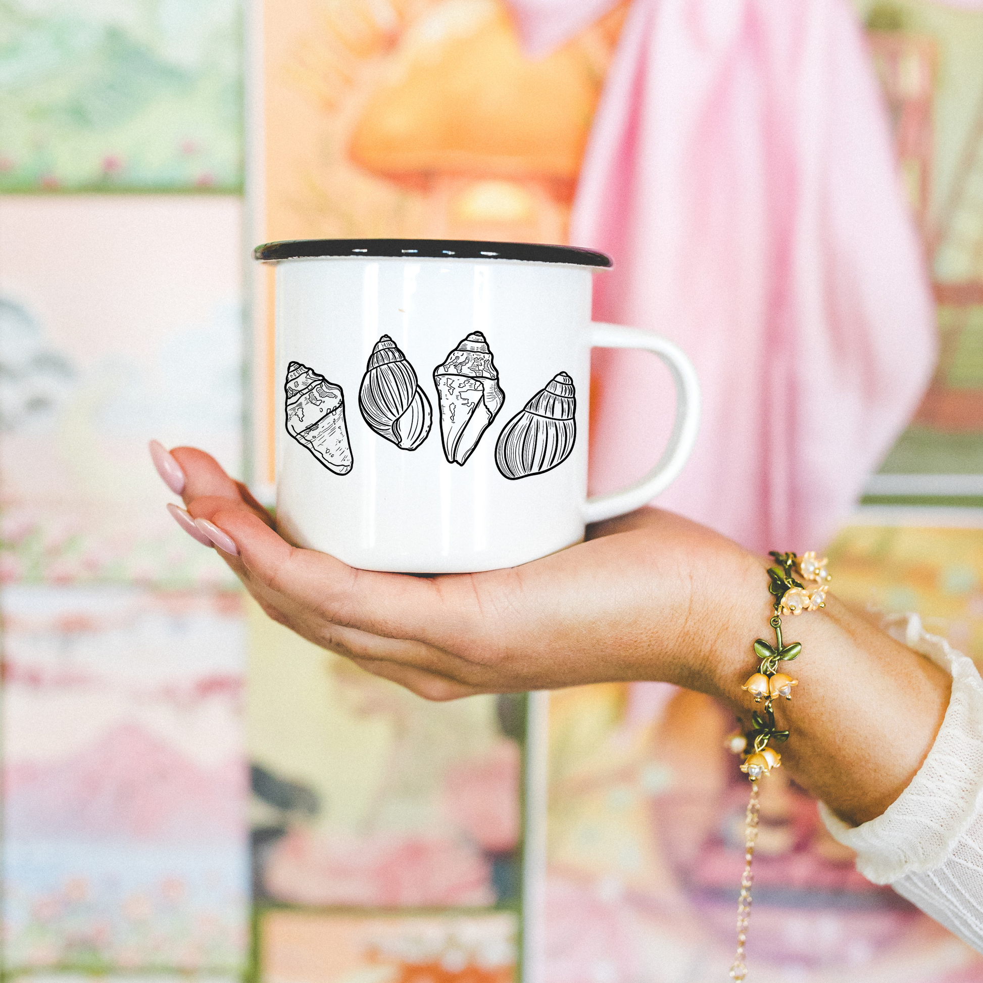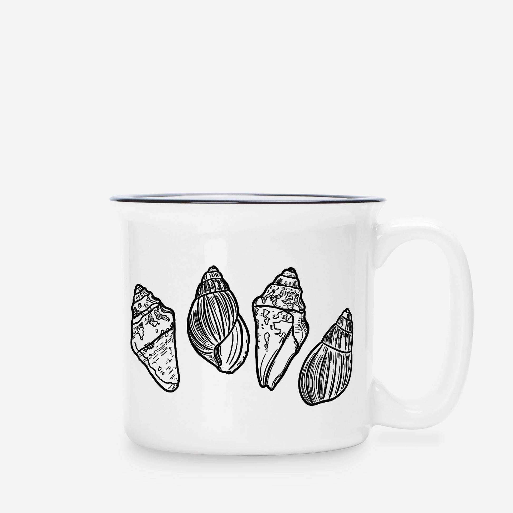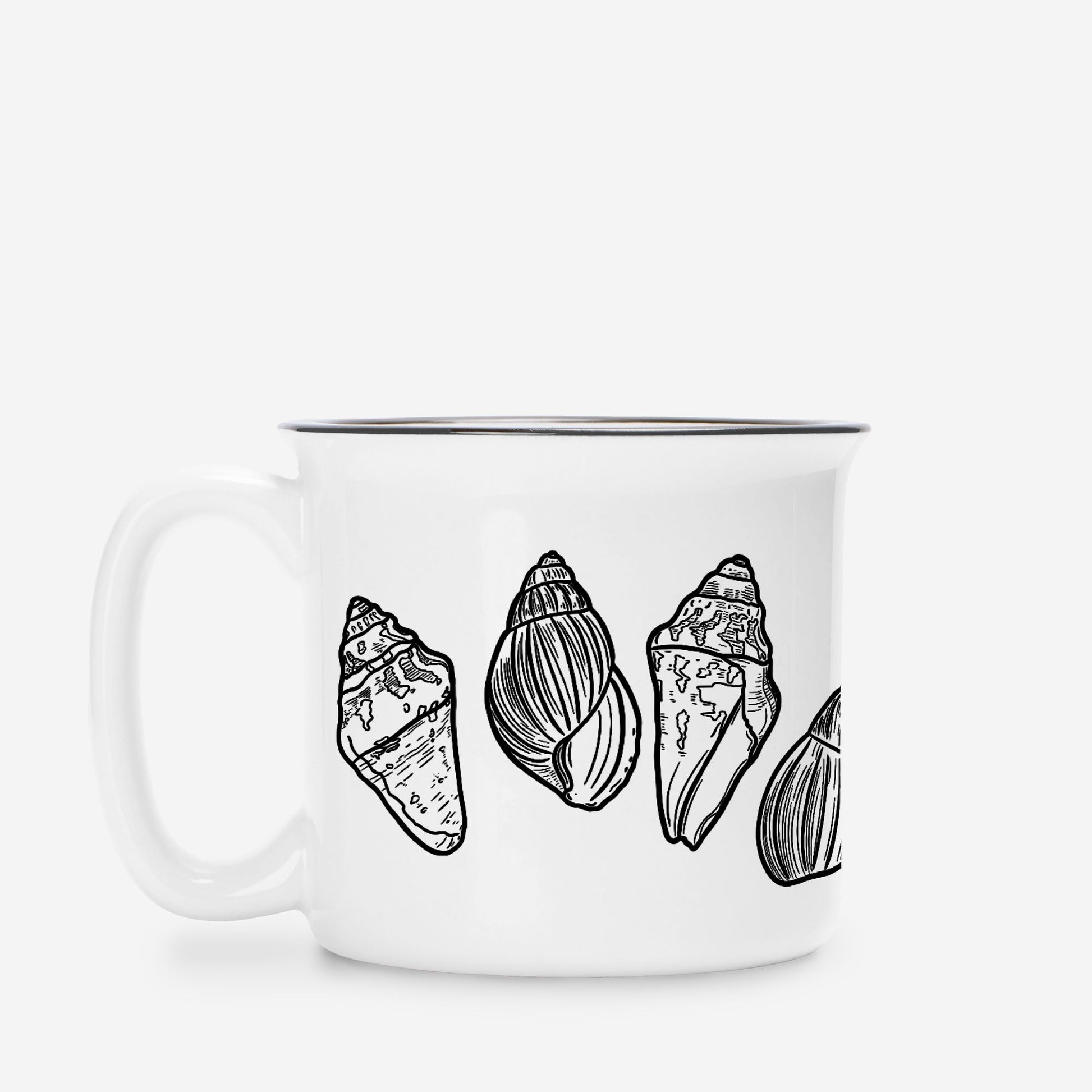 Cone Shells Ceramic Mug – White 13oz Minimal Coastal Coffee Cup | Beach-Inspired Seashell Drinkware