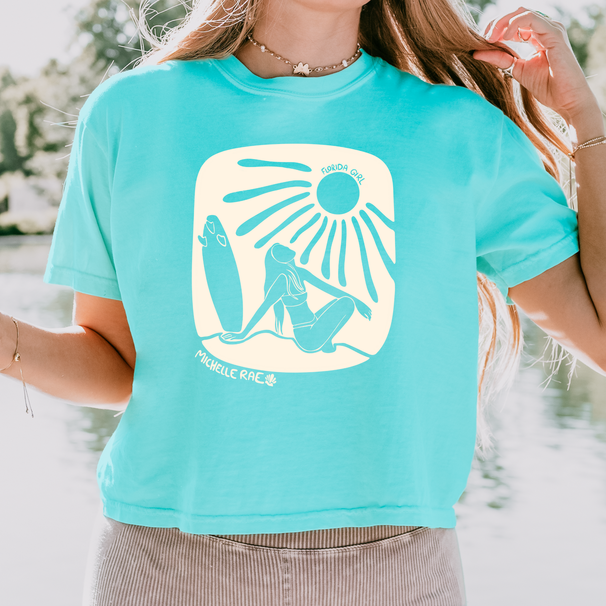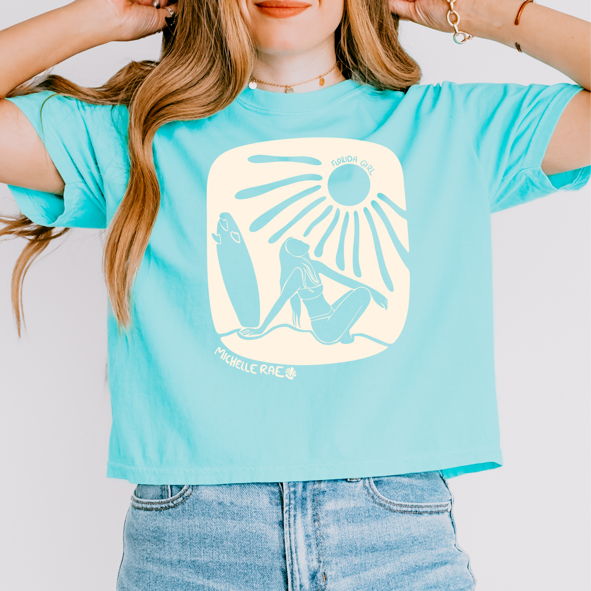 Stay coastal and cute in our Florida Girl Chalky Mint Boxy Tee—your new go-to for sunny days and salty air. This soft, relaxed-fit tee features a bold coastal graphic and a breezy boxy cut that pairs perfectly with denim, bikinis, or barefoot beach walks. Made for the proud Florida girl who lives for sunshine, sea breeze, and state pride.