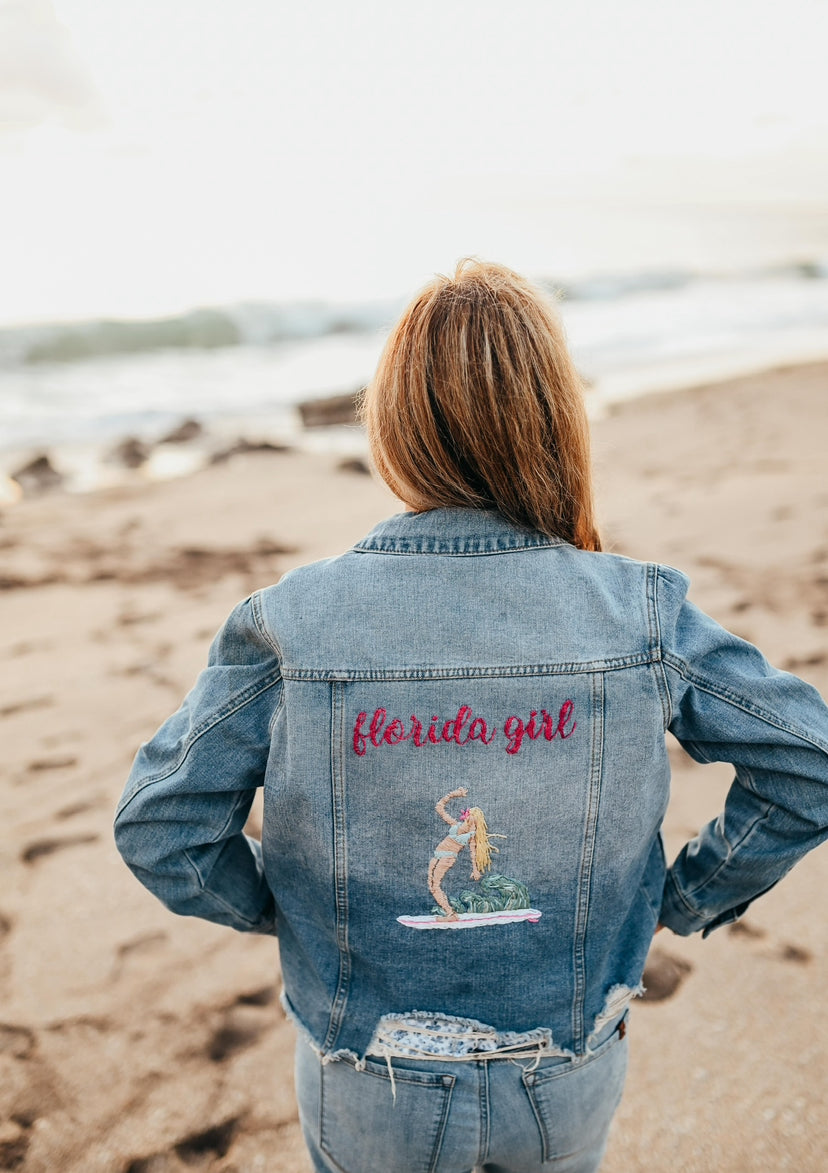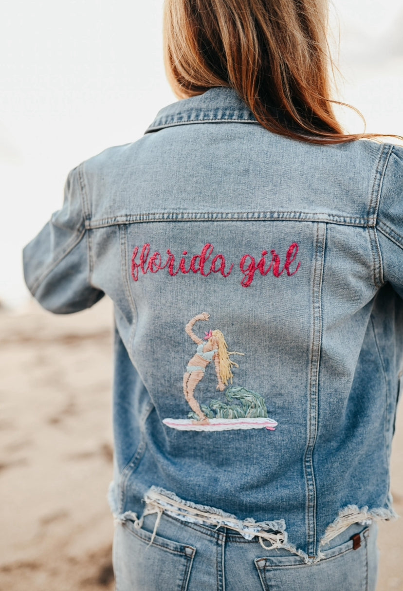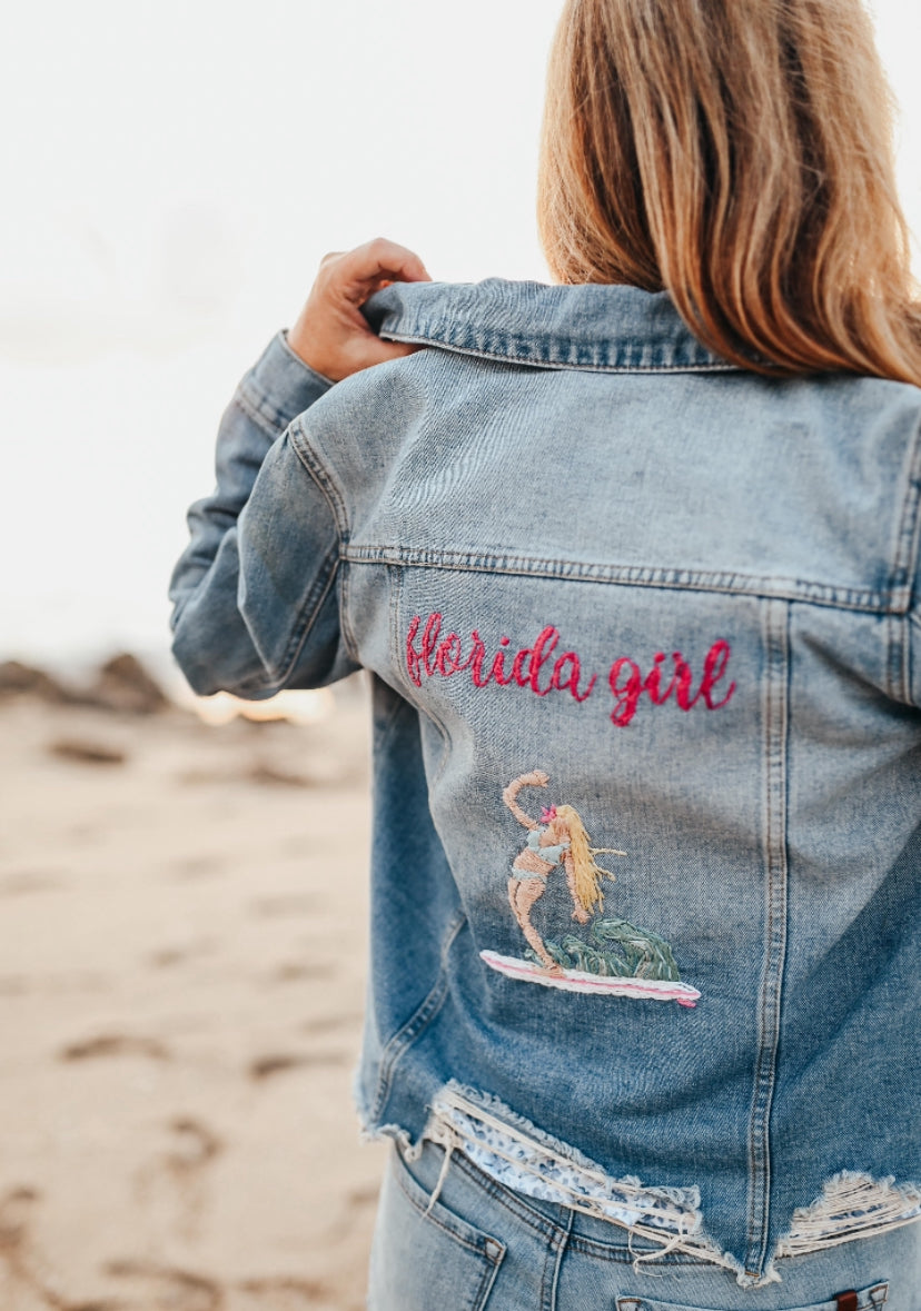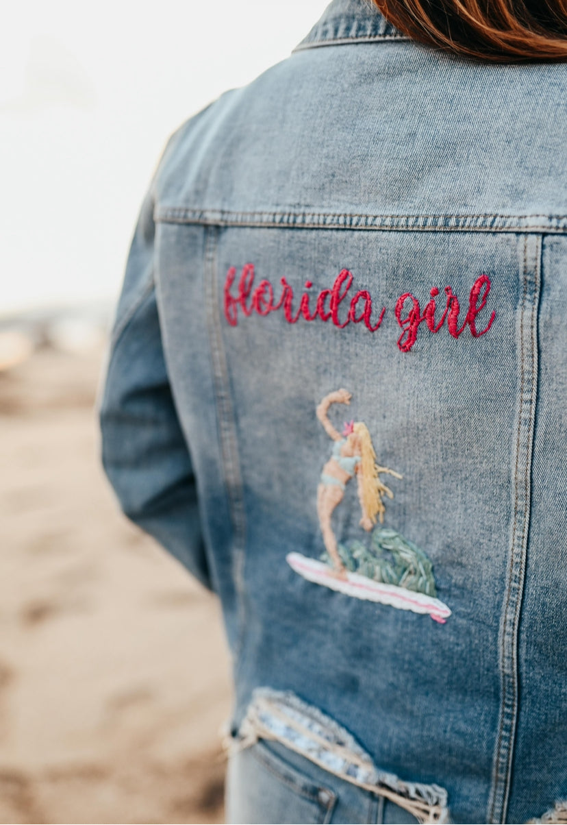 Hand Embroidered Florida Girl Denim Jacket – Coastal Style for Sunshine Lovers