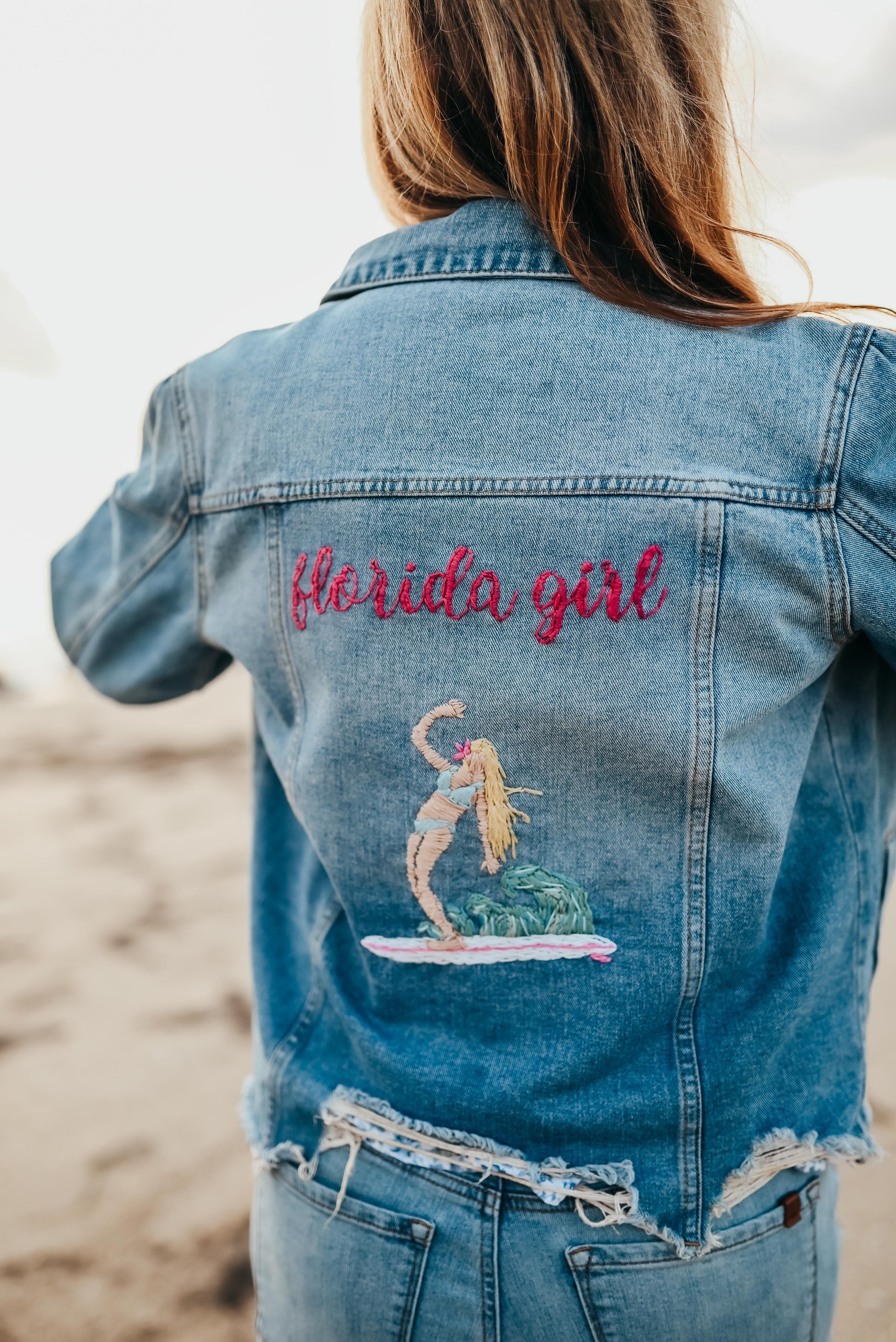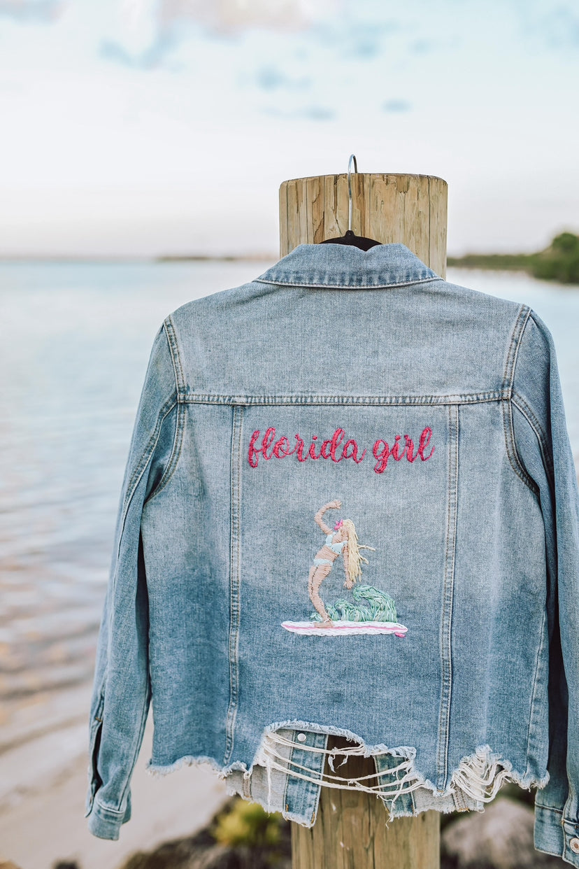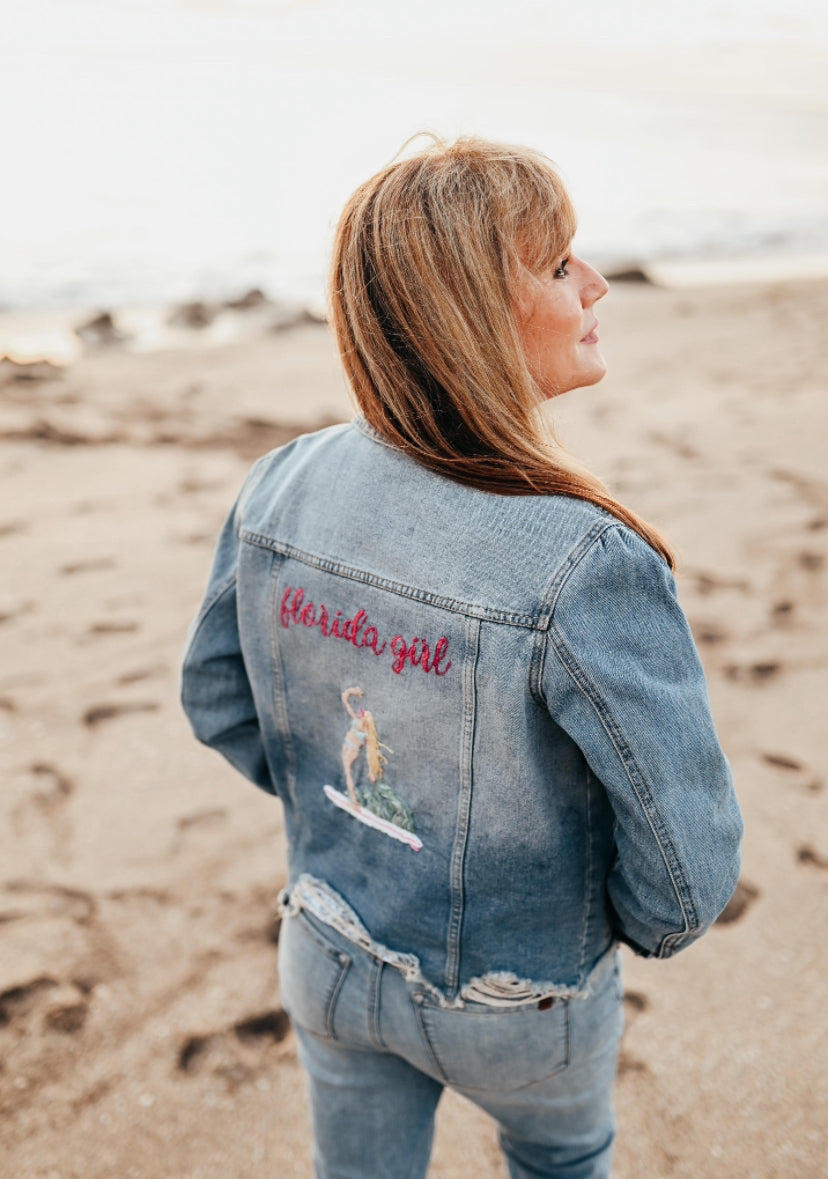 Hand Embroidered Florida Girl Denim Jacket – Coastal Style for Sunshine Lovers