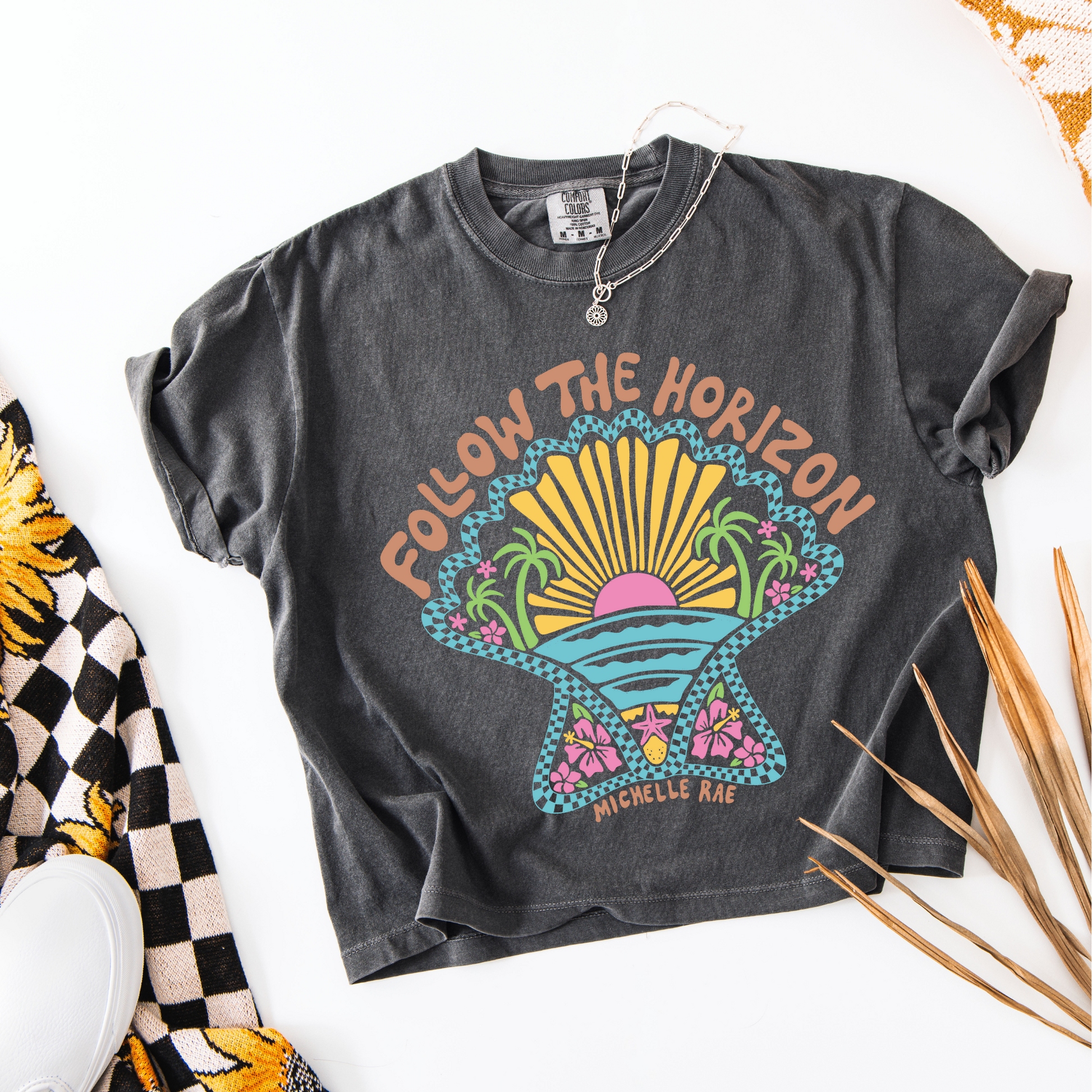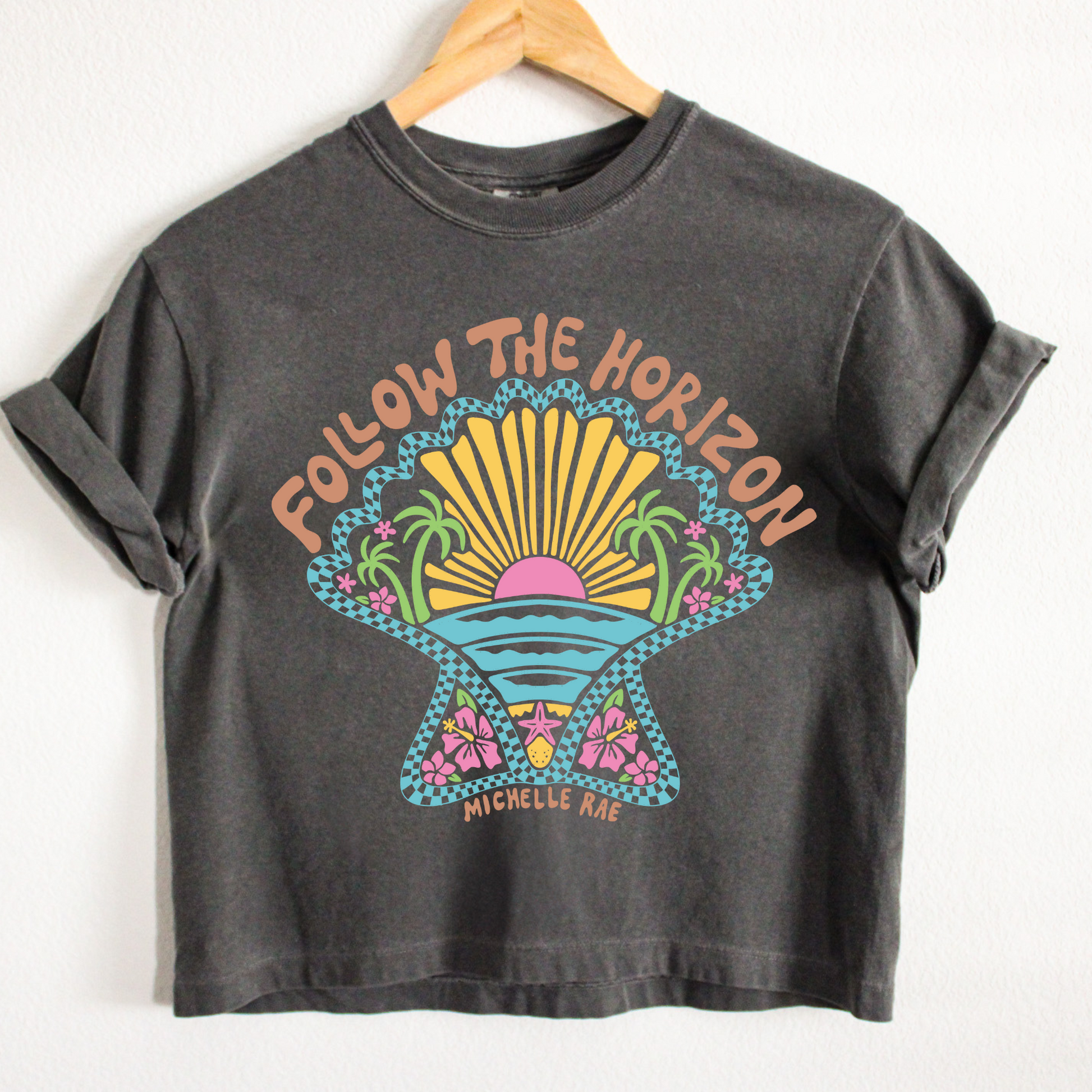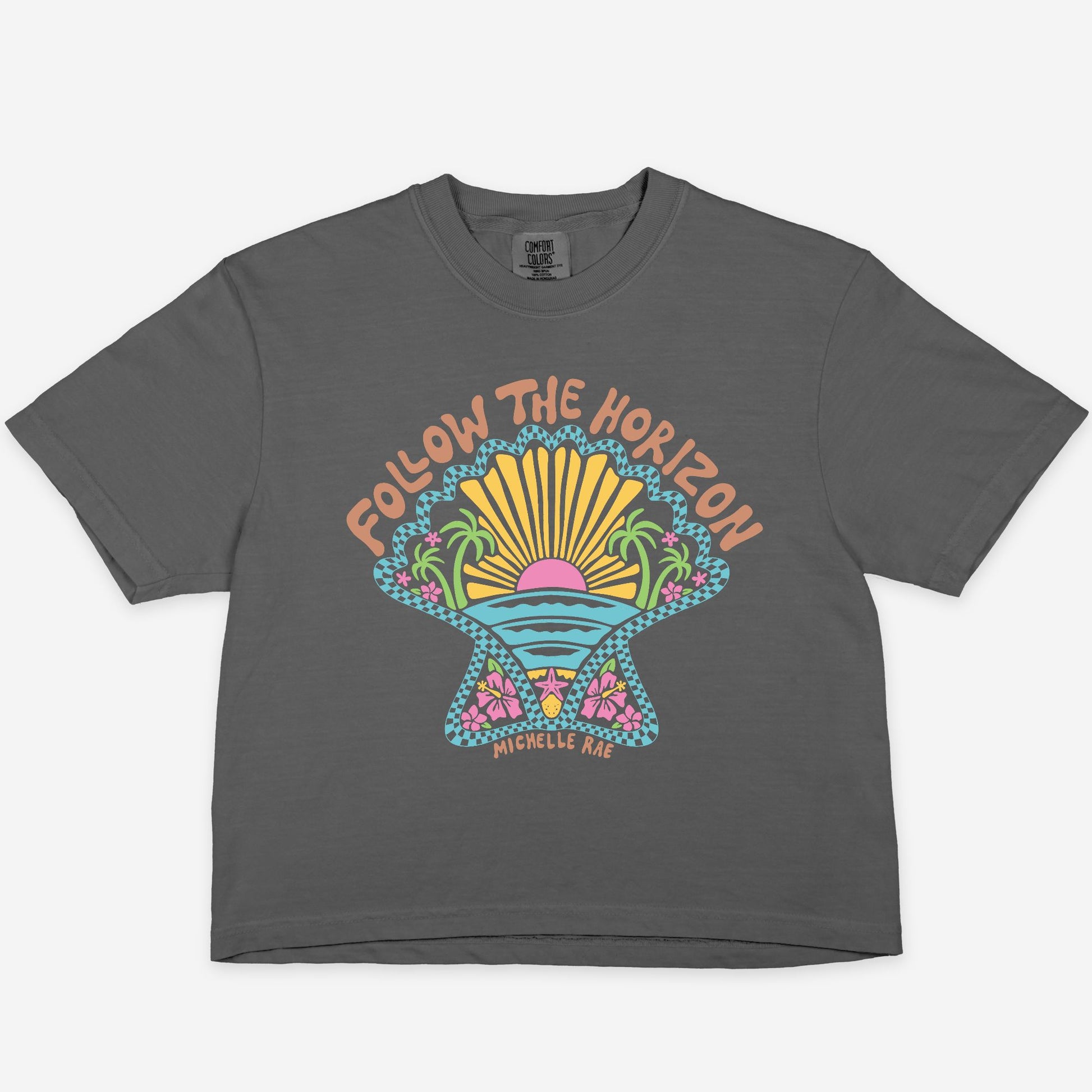 Follow The Horizon Pepper Boxy Tee – Coastal Inspirational Graphic T-Shirt