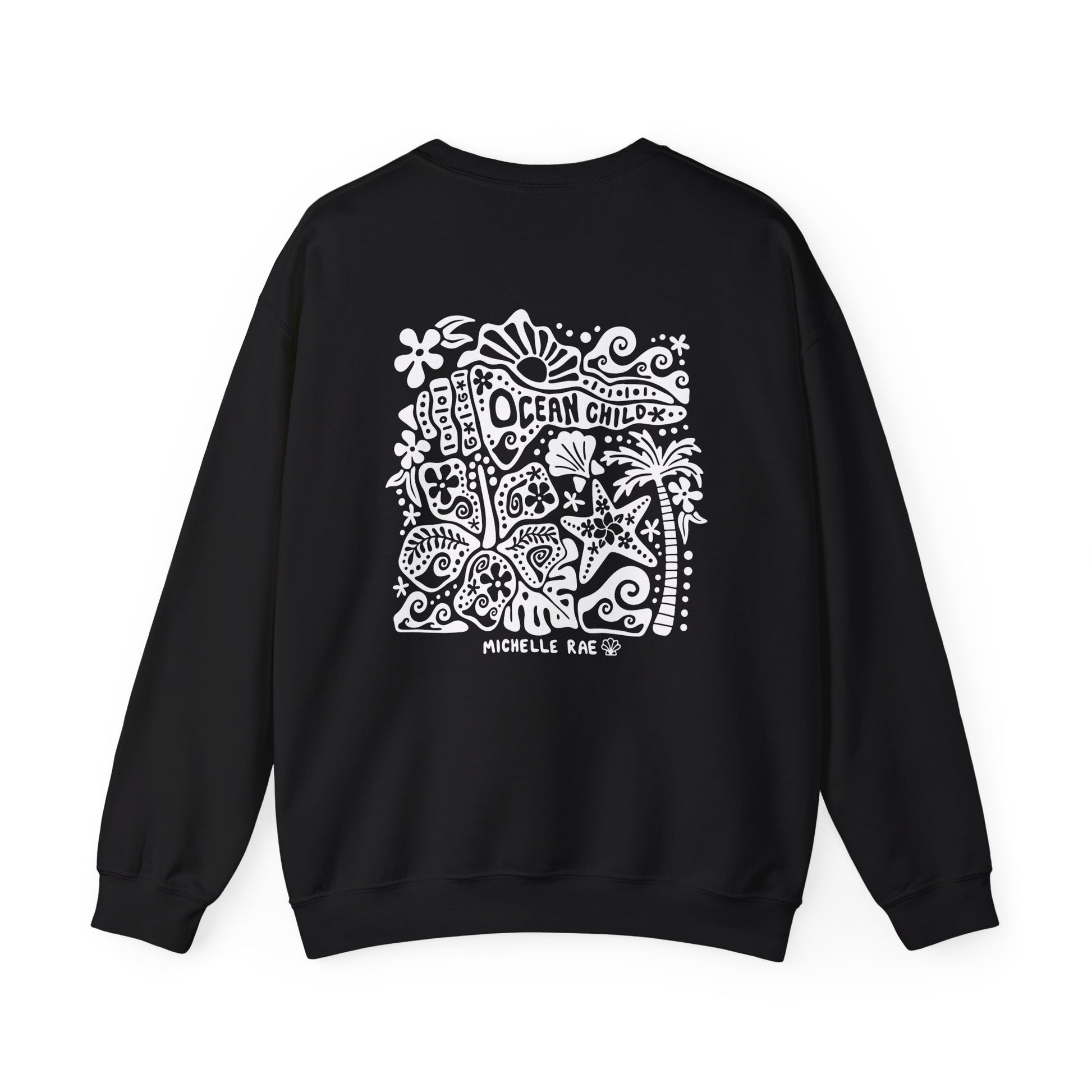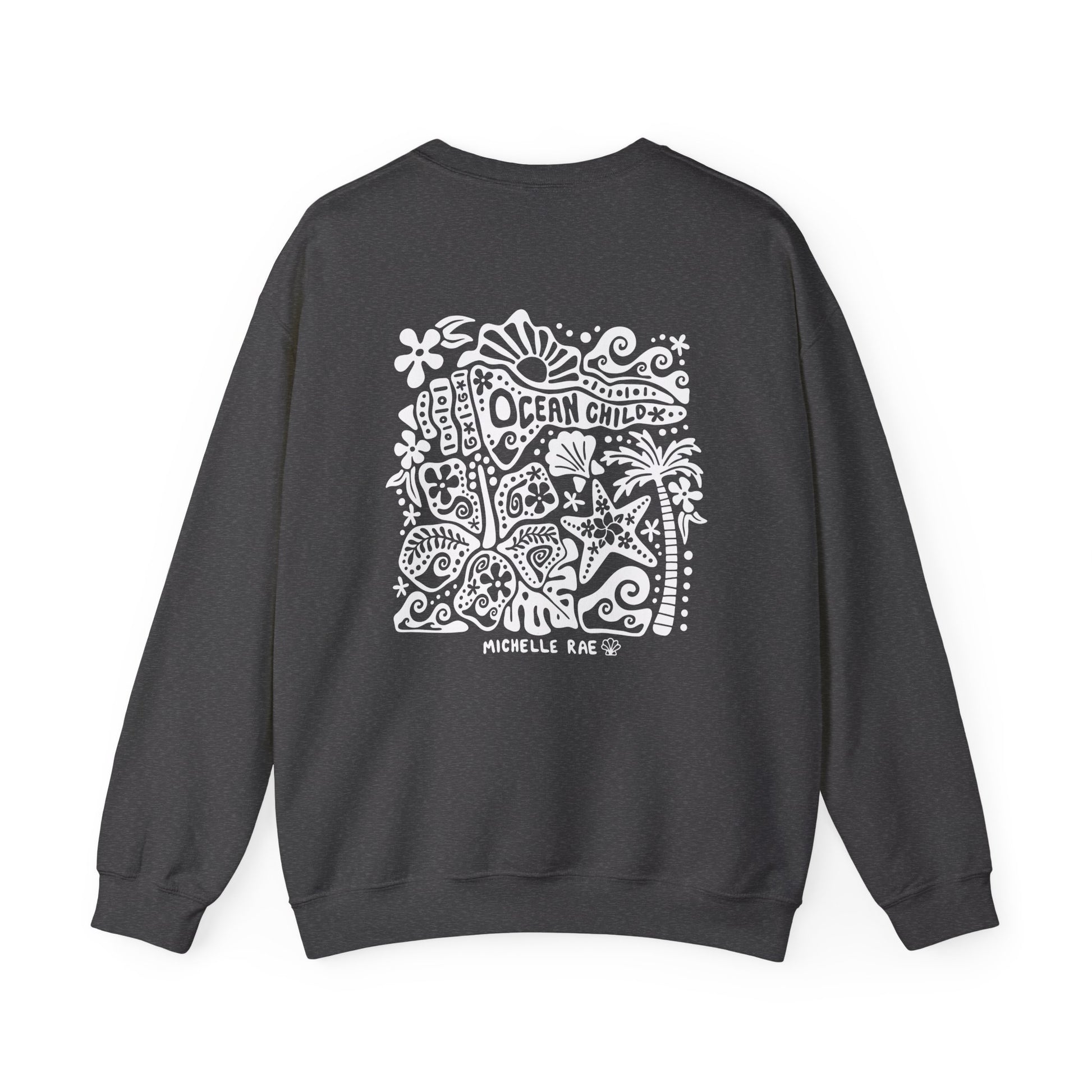 Hibiscus Ocean Child Black / Dark Heather Crewneck Sweatshirt – Coastal Graphic Pullover for Women