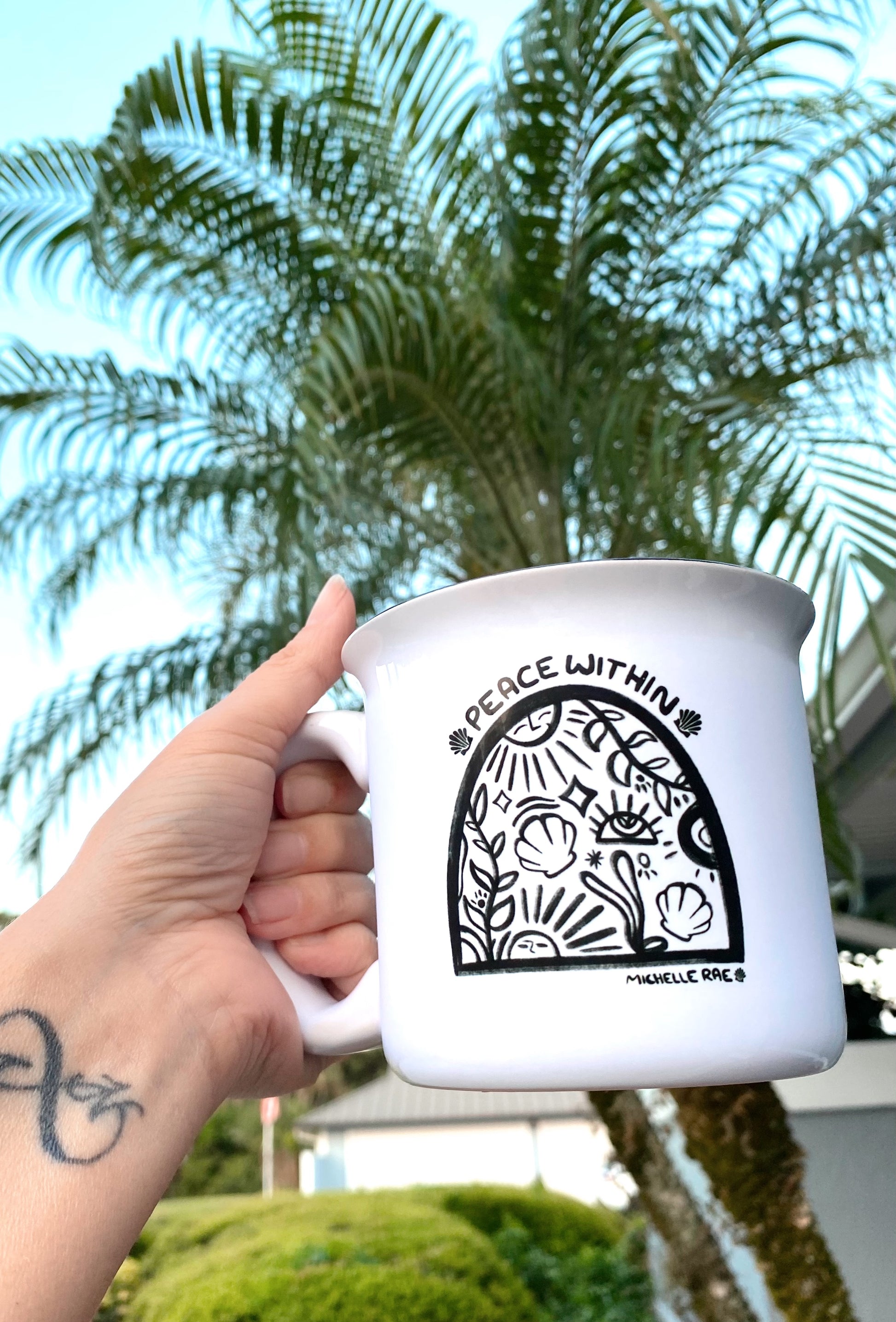 Start your day with stillness and simplicity with our Peace Within Ceramic Mug. This 13oz white mug features a clean, minimalist coastal design that reminds you to slow down and sip with intention. Perfect for coffee, tea, or quiet moments by the sea (or just in spirit), it’s made for those who find their strength in stillness.