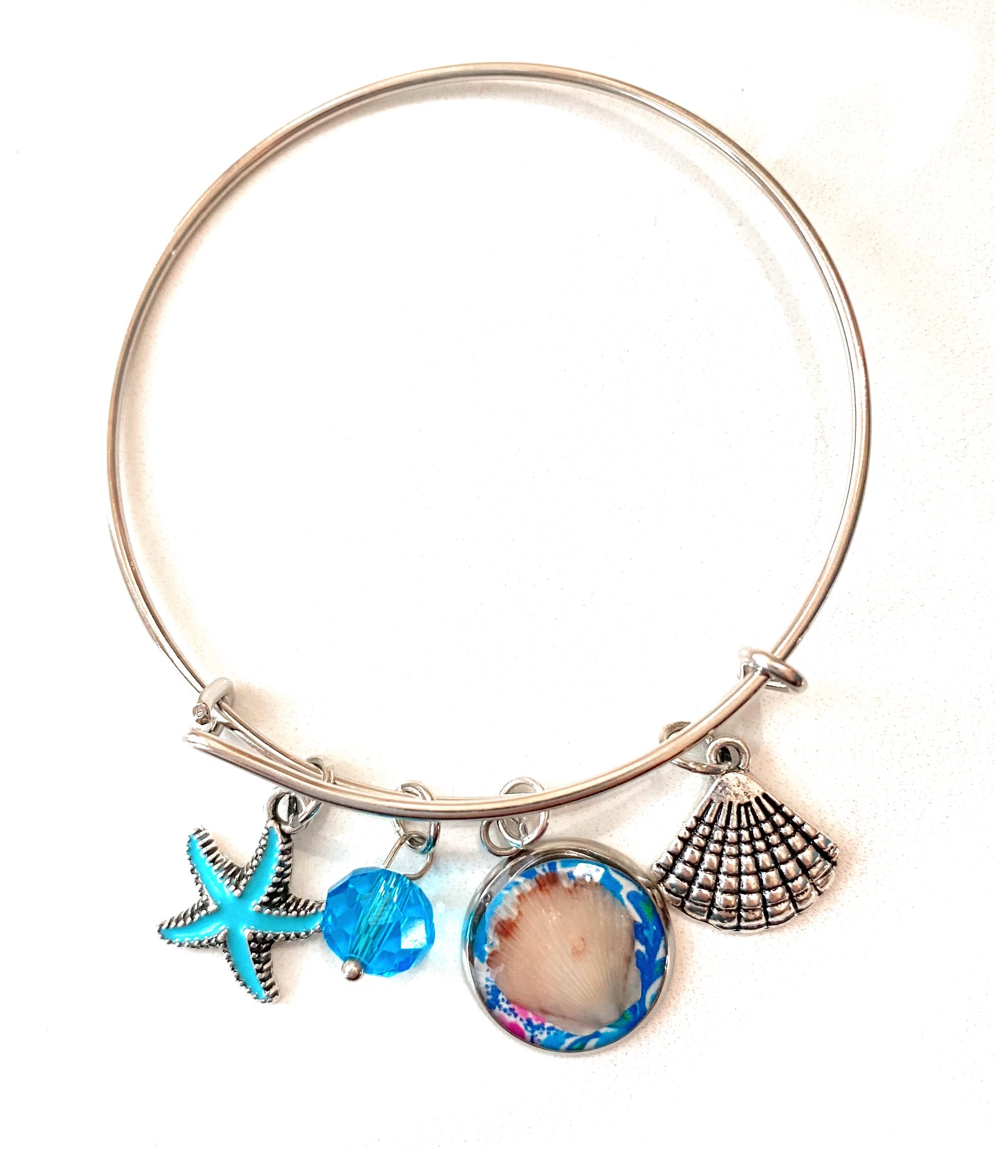 The "Seashell Ocean Charmed" Bangle is so beautiful and OOAK.